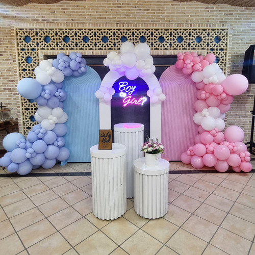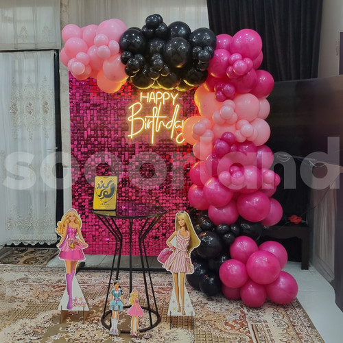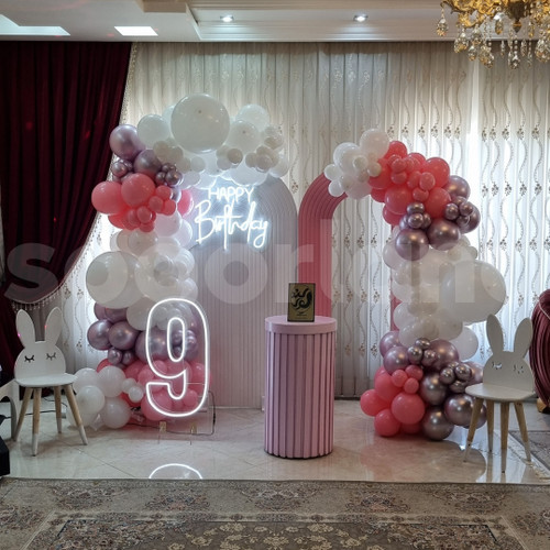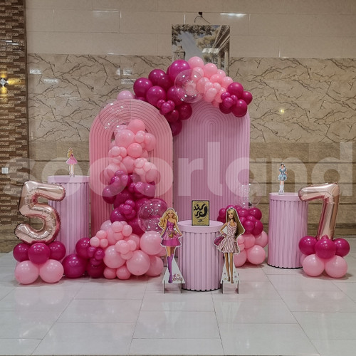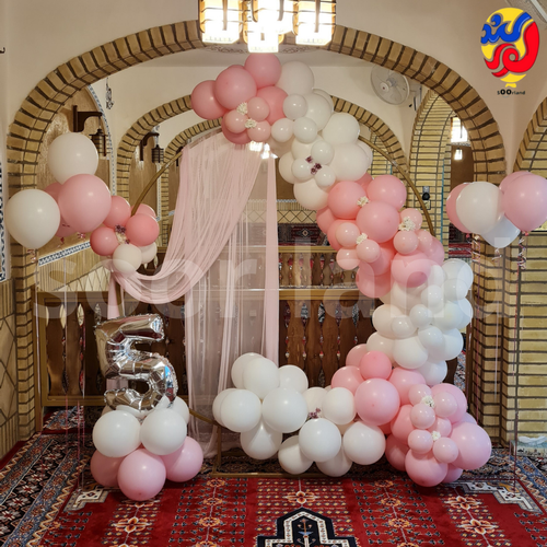 بادکنک آرایی دخترانه تم سرخابی سفید