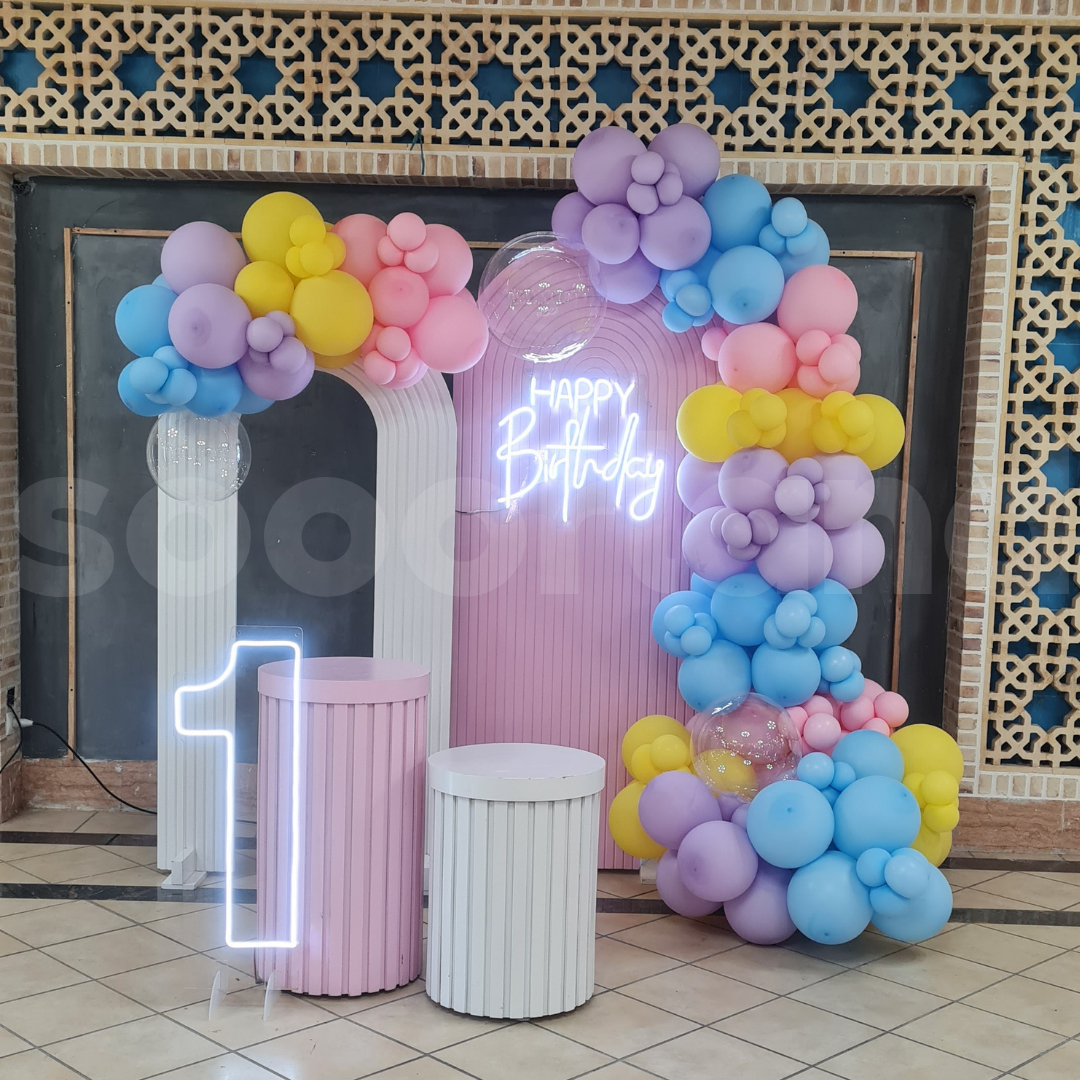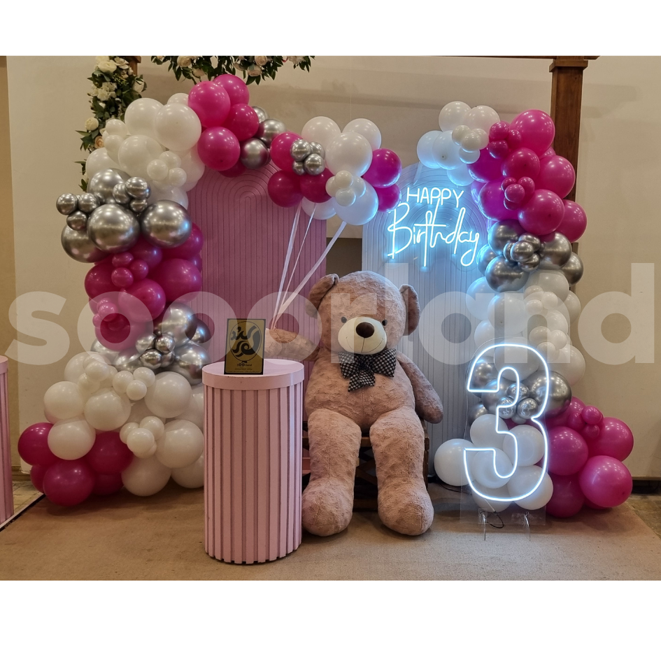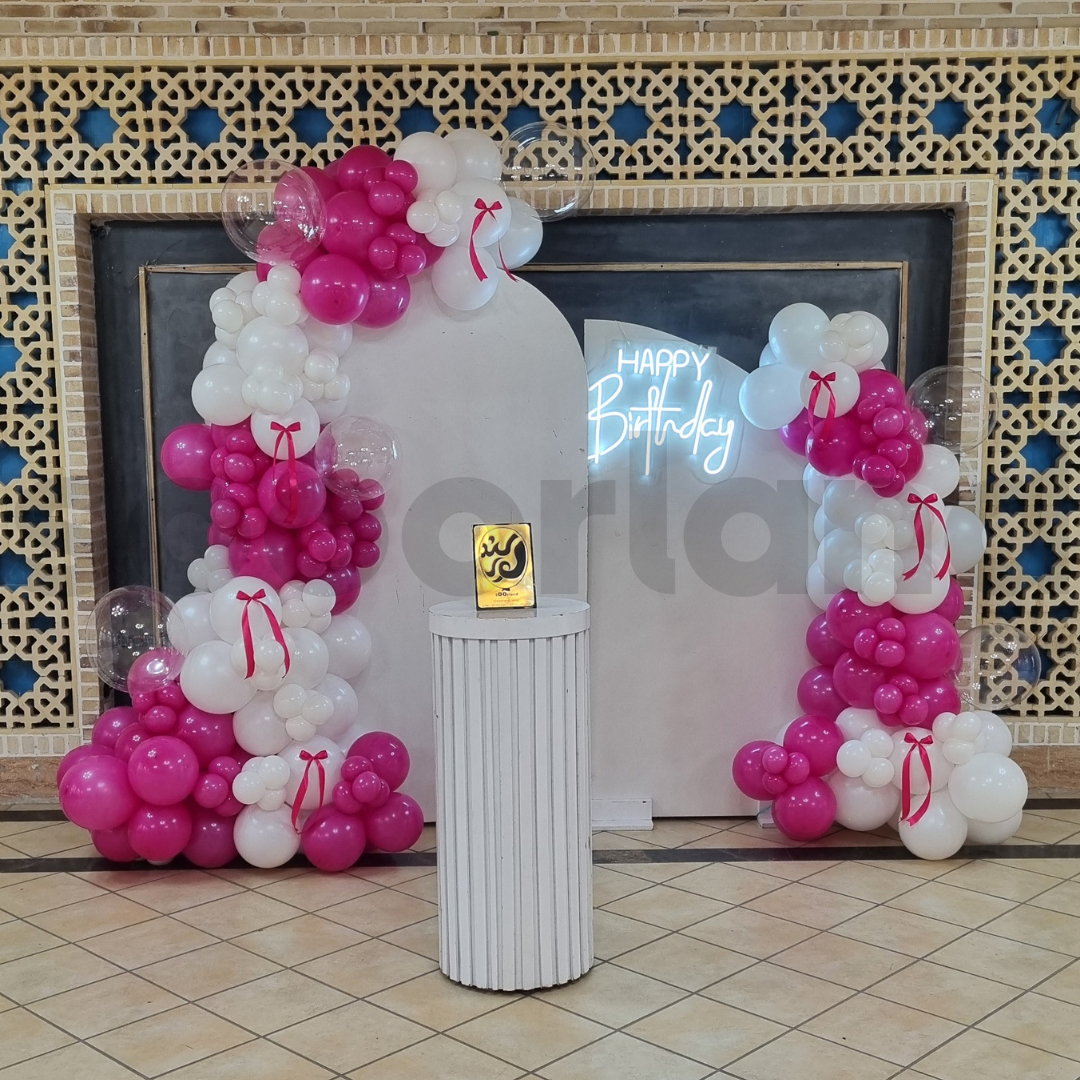 بادکنک آرایی دخترانه تم سرخابی سفید