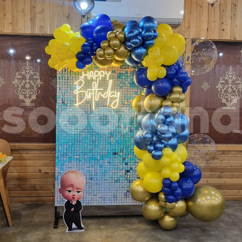 بادکنک آرایی دخترانه تم زرد نقره ای