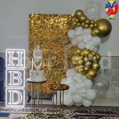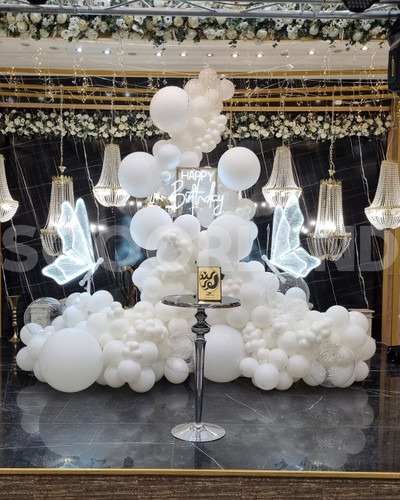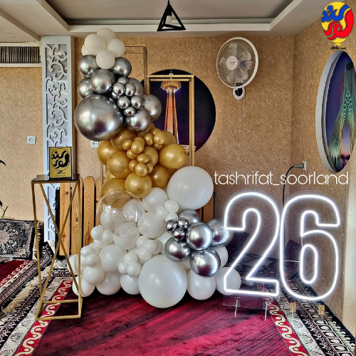 بادکنک آرایی تم سفید طلایی و نقره ای کروم