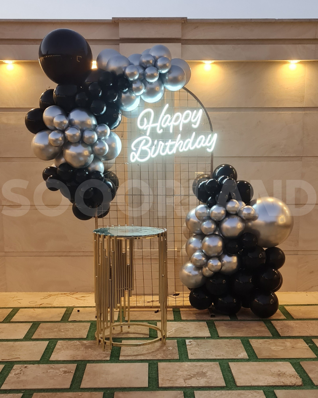بادکنک آرایی تم مشکی و نقره ای کروم