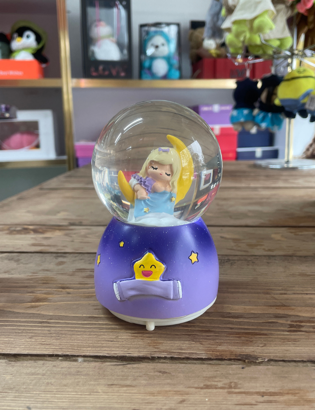 گوی موزیکال چراغدار طرح دختر و ماه طلایی سایز متوسط