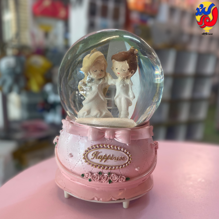 گوی موزیکال پمپی طرح شاهزاده و پرنسس سفید صورتی